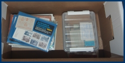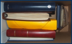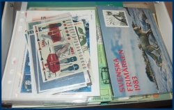 20.700 kr: häften, årssatser och lösa märken monterade på olika typer av lösblad, mest 1980-tal fram till 2006. Mervärde för 56 rabattfrimärken. Lådan innehåller också lite stämplat Sverige och utlandet, en bunt försändelser samt diverse PFA-gåvor etc.