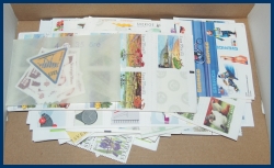 ända fram till 2019 både vad gäller årssatser och årsböcker. Nominal ca 24.400 kr med mycket stor andel Sverige Brev. (Julmärken räknade som 21 kr/st). Till den här posten hör även lite stämplade märken och en bunt försändelser av enklare snitt.