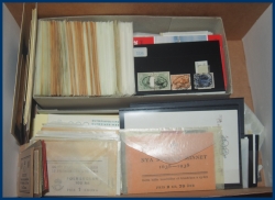 Massor av pergamynkuvert, lösa märken och 100-buntar. Äldre-modernt.
