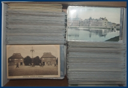 Drygt 2.000 st vykort i 8 välfyllda kontorspärmar. Samlingen är uppdelad geografiskt efter områden/gator med allt från äldre format till A6. Även ca 500 st dubbletter i 2 askar. Samlarens förteckning medföljer.