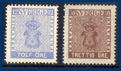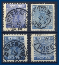 på höger sida, Repan streck över vänster 12, Brott i ramlinjen ovanför R och I i Sverige samt lodrätt dragspel några ktt.