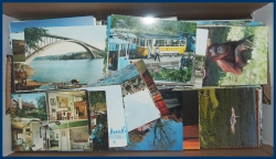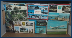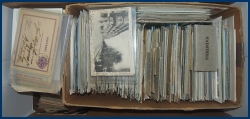 landskapsvis eller ibland efter stad. Särskilt mycket från Jämtland, Skåne, Småland och Göteborg. Tusentals kort totalt. Lådan väger 21 kg.