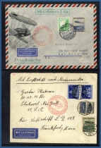 1943 från Pretoria med "Consular mail" till svenska konsuln i Kapstaden, därifrån återanvänt med ny frankering till Three Anchors Bay (uppskuret på sidorna för utställningsmontering). 1948 återanvänt inrikes brev med tjänsteetikett och ny frankering till Tjeckoslovakien. 1943 censurerat brev från Australien till Surrey, England. Återanvänt till Canada med ny frankering.