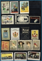 insticksalbum + bunt lösa blad. 1 album med äldre reklametiketter.