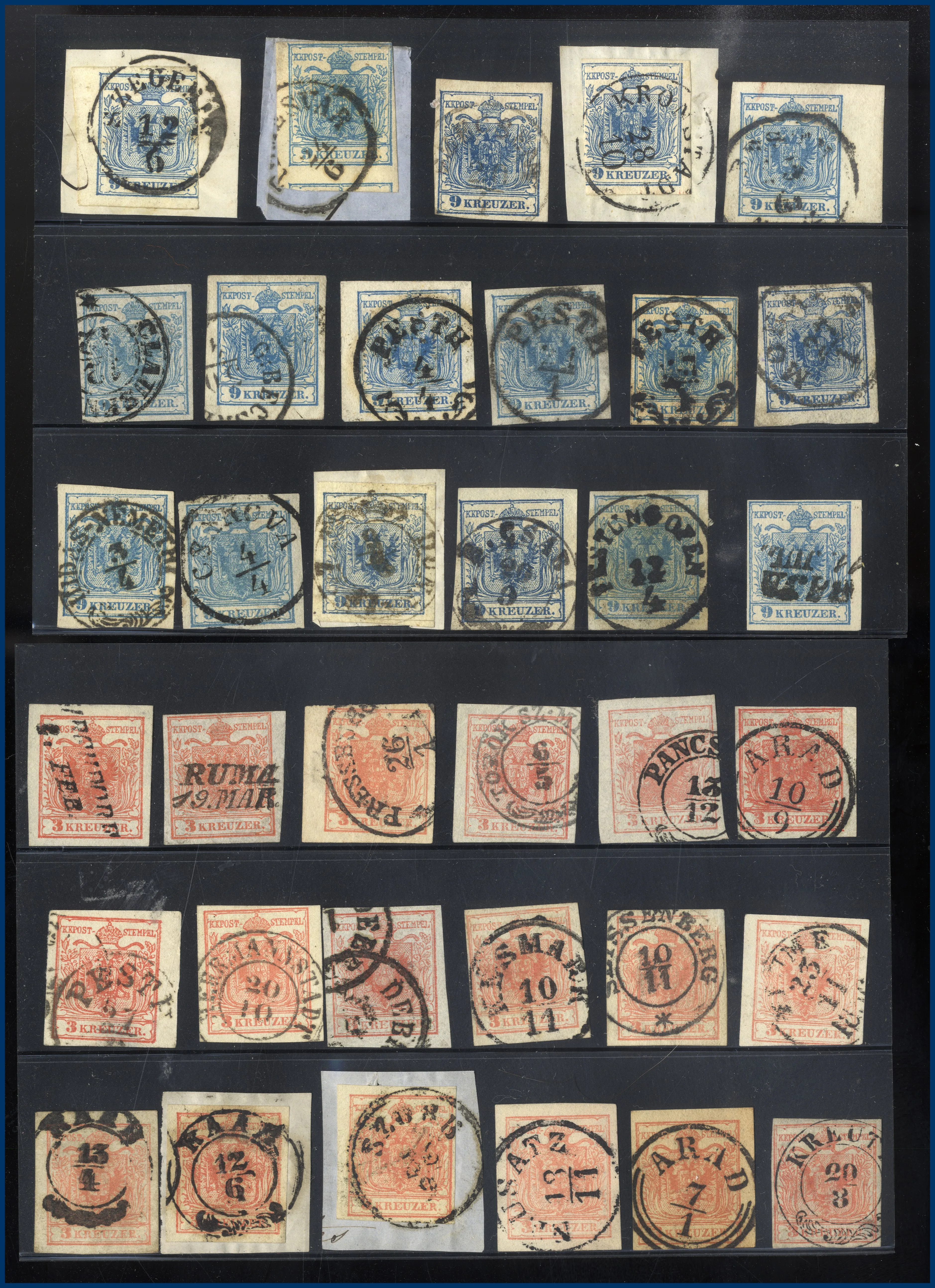 285. Österrike: 18x 3 Kreutzer samt 17x 9 kreutzer otandade,