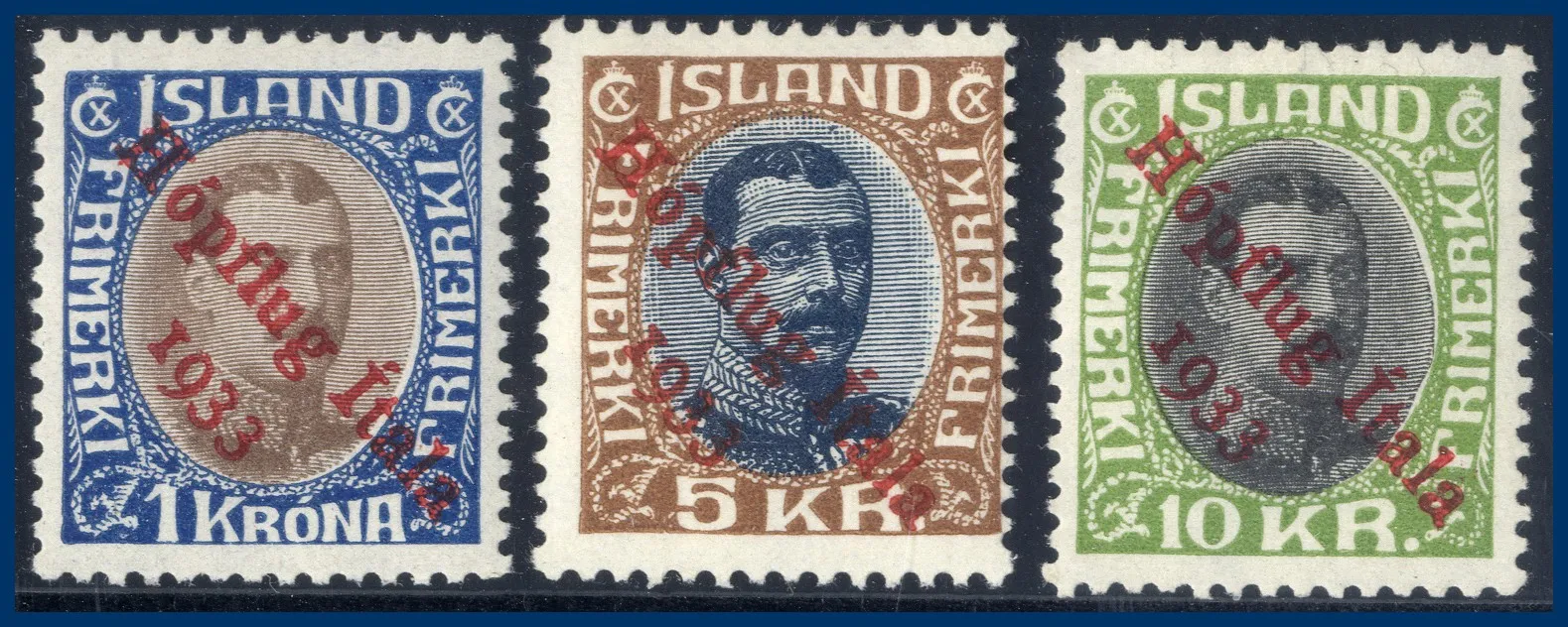 263. Övertryck "Hopflug Italia 1933" (F.165-167) *. Facit 20.800 kr.