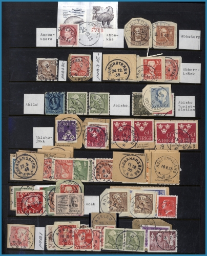 Inget från Göteborg eller Stockholm men flertalet av övriga orter finns med. Vapentyp till ca 1990-talet med lösa märken, klipp och försändelser. Delvis många dubbletter men också många olika stämpeltyper. Vi har valt ut ett representativt urval bilder enbart från första pärmen. Pärmarna fyller 7 st välfyllda flyttlådor, bör hämtas.