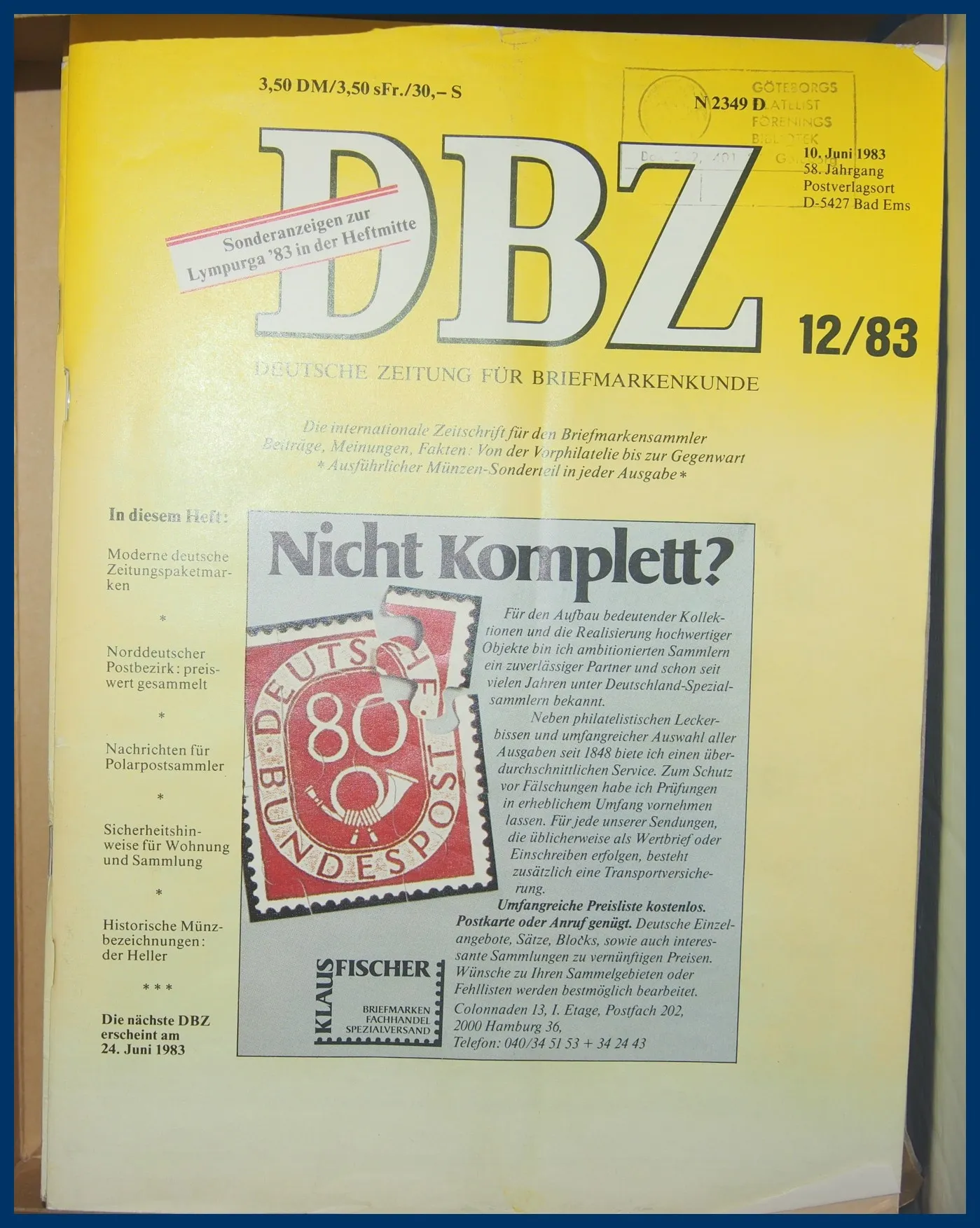 Zeitung. Enligt inlämnaren kompletta årgångar av 1910-1912, 1952-1961, 1979-2008 och spridda nr 1913-1923, 1962-1978. Mycket tungt, Bör hämtas.