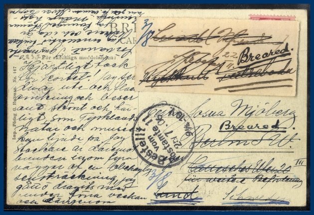 33. (A) 10 öre Oscar II singel på vykort till Tyskland avstämplat