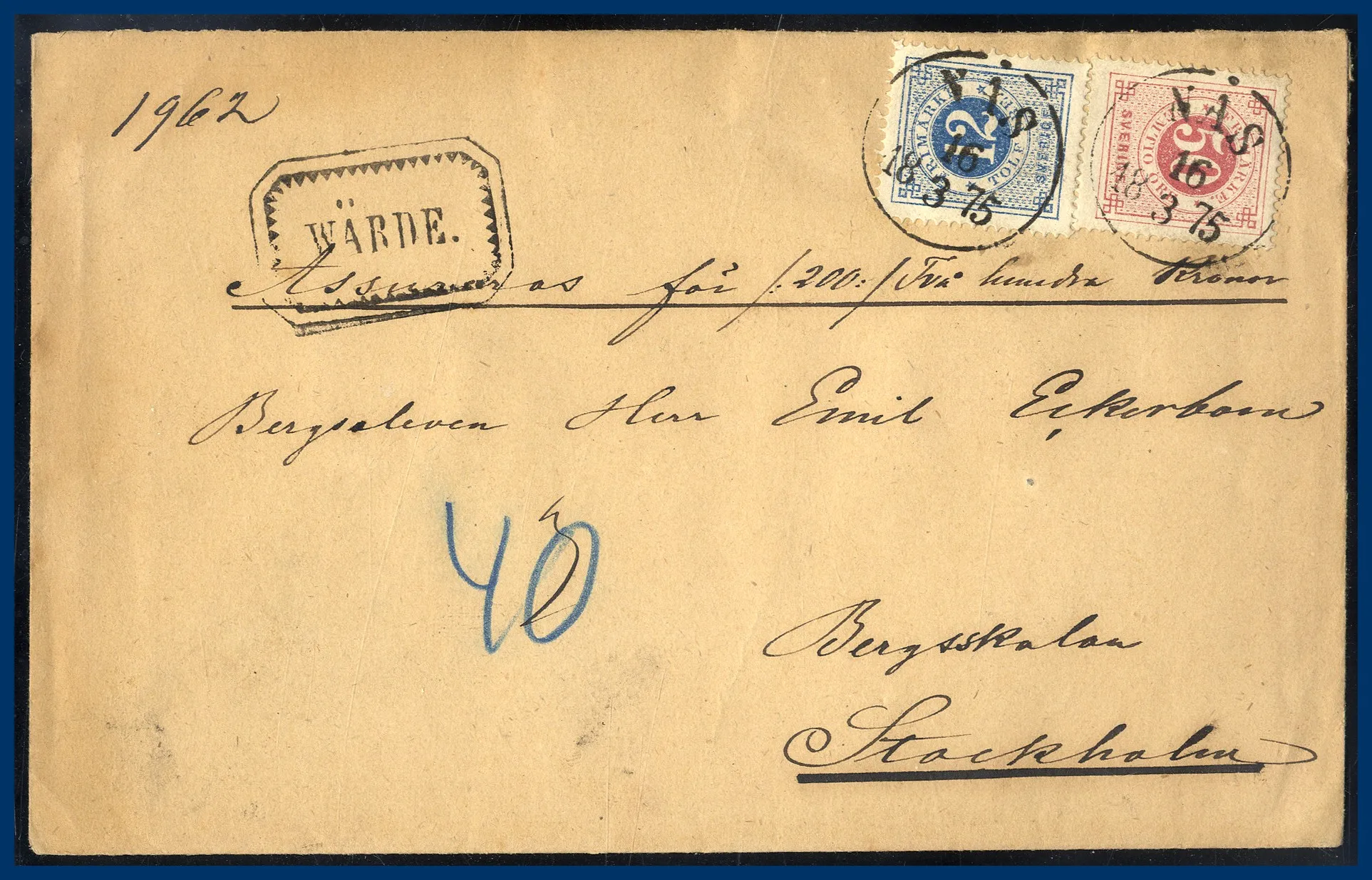 290. (A) 12+50 öre Ringtyp t.14 på vackert ASSbrev (200 kr)
