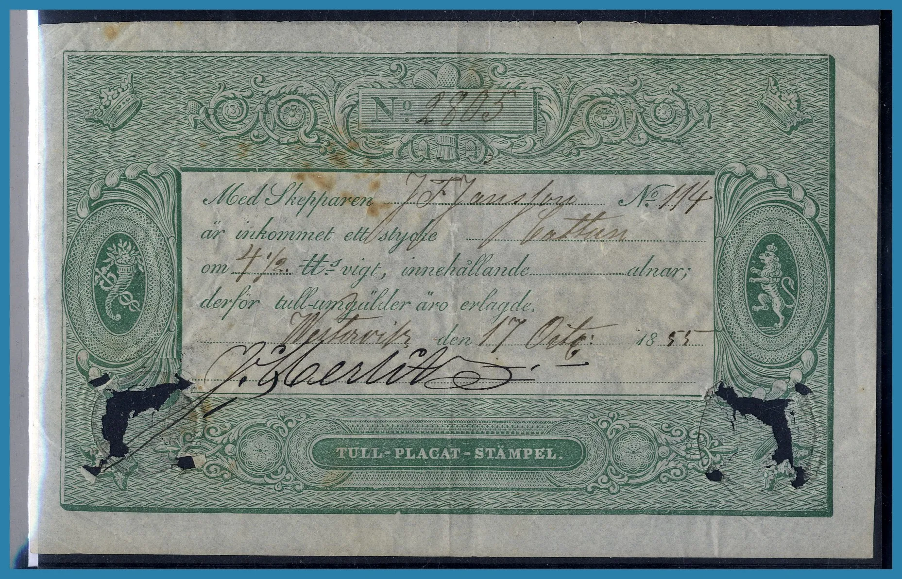 (A) 1832 Tullstämpelmärke importerat tyg. Westerwik.