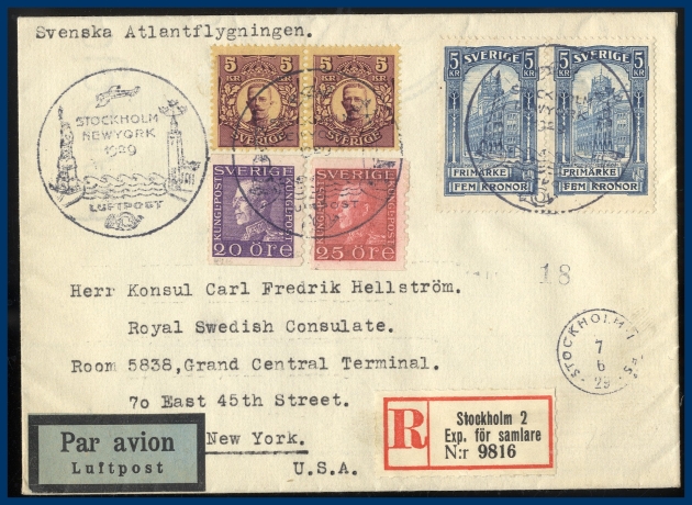 256. (A) 20 kr och 45 öre som frankering på REK Luftpostbrev