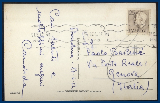 74. (A) 25 öre Gustaf VI Adolf typ 1 (F.407) på brevkort till Italien