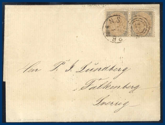 274. (A) 2x 3 Skilling (F.21) i vågrätt par på brev med innehåll