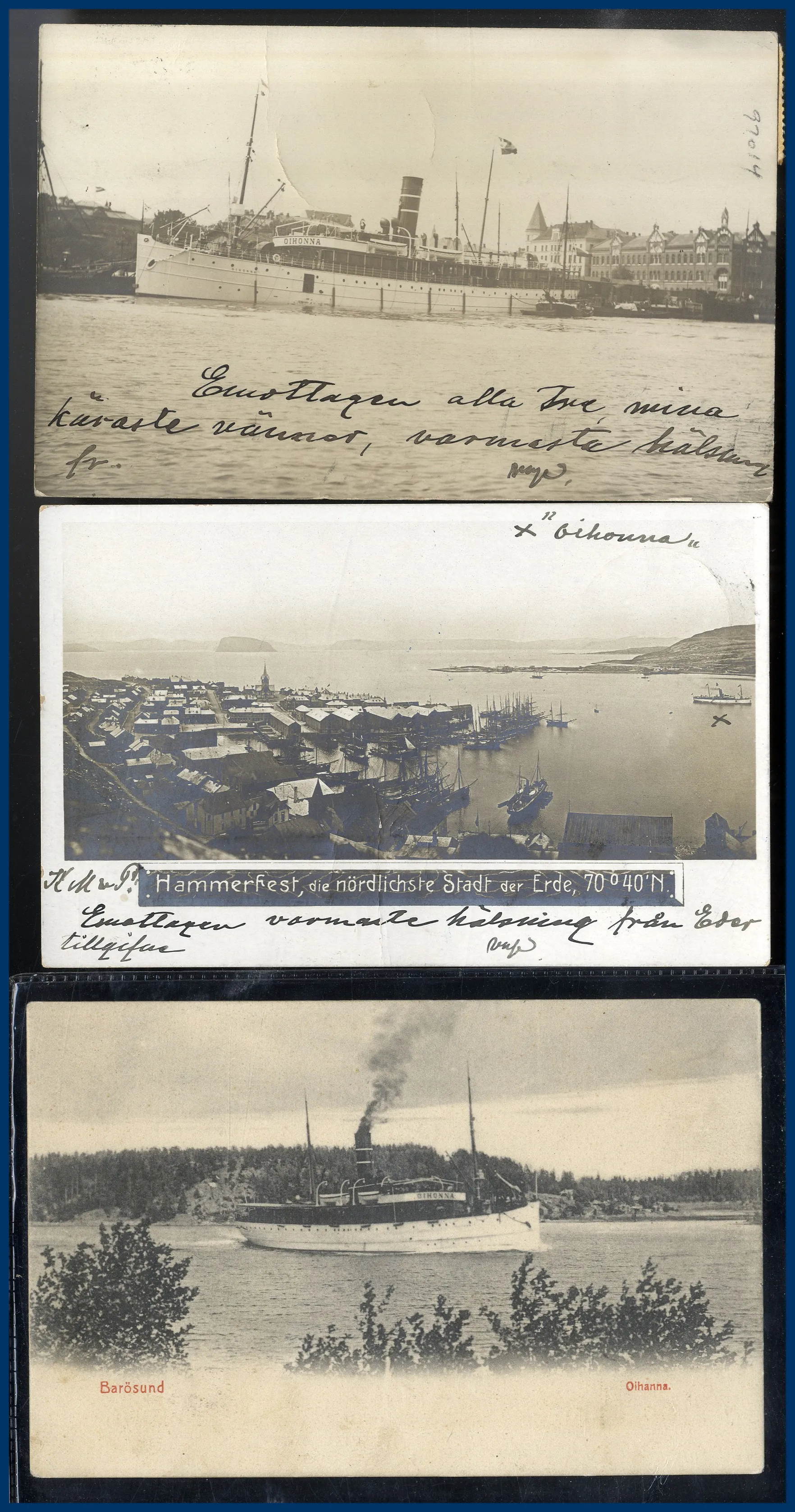 318. (A) 3 st vykort avbildande "S/S OIHONNA" som utgick från