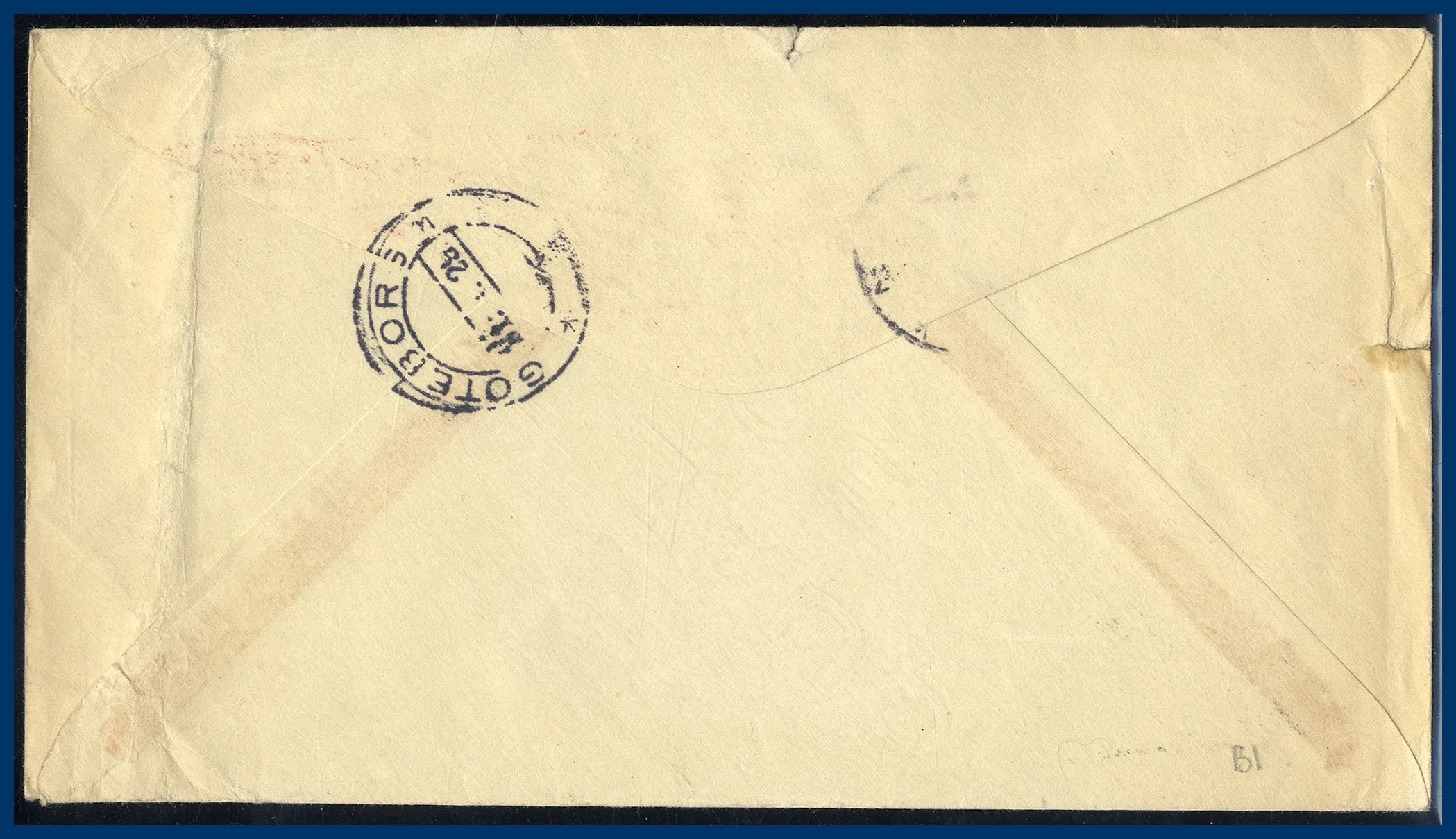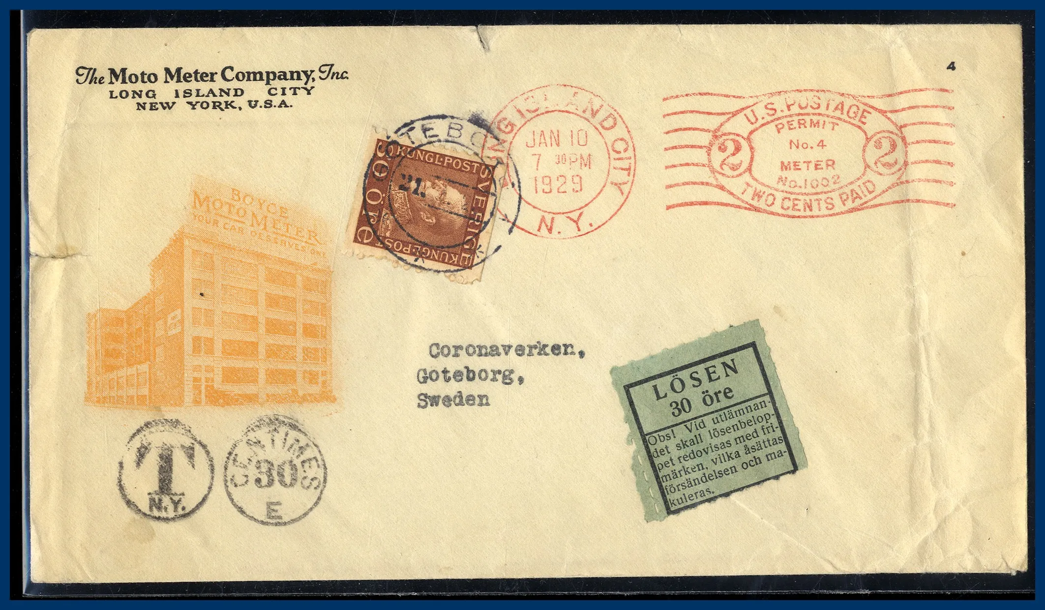 från USA 1929. Frankerat med 2 cent frankostämpel.