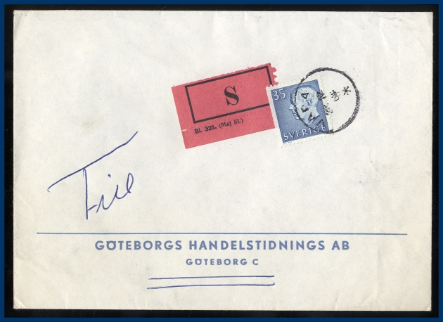 Avstämplat "VARA 30.12.1963" Trots att detta datum (30 december) var en måndag, behövdes en söndagsetikett for utdelning under röd dag (Nyårshelgen). Mycket ovanlig försändelse.