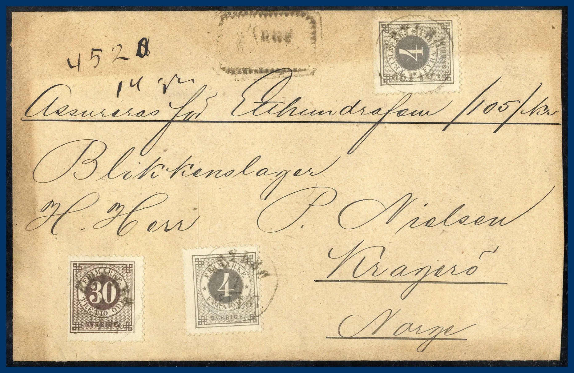 333. (A) 38 öre Assurerat brev (105 kr) Ringtyp ph (F.2x 42+47)