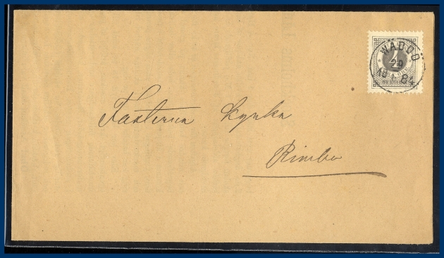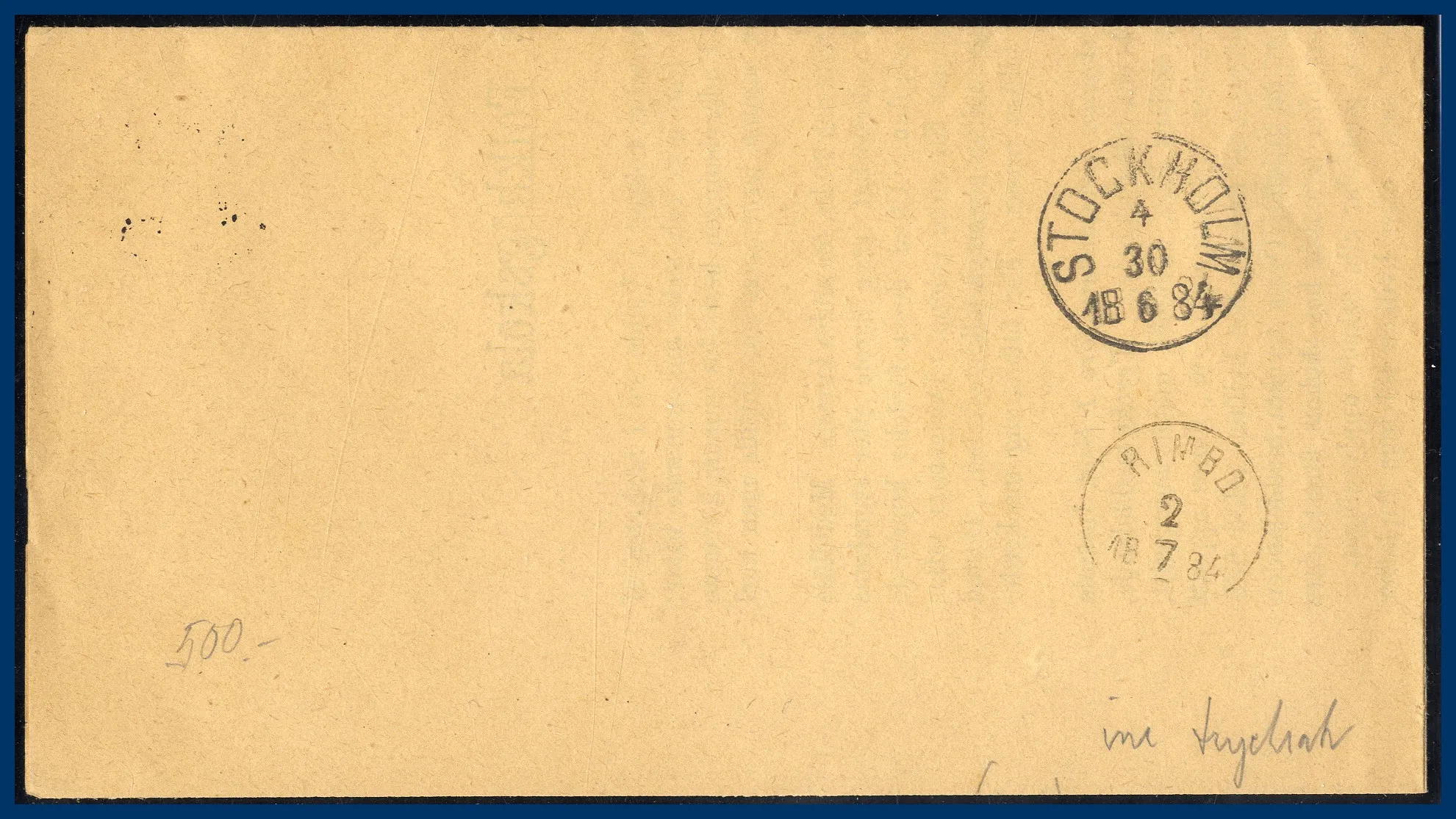 på inrikes trycksak till Rimbo. Transit Stockholm 4, 30/6 och ankomststämplat 2/7 på baksidan.