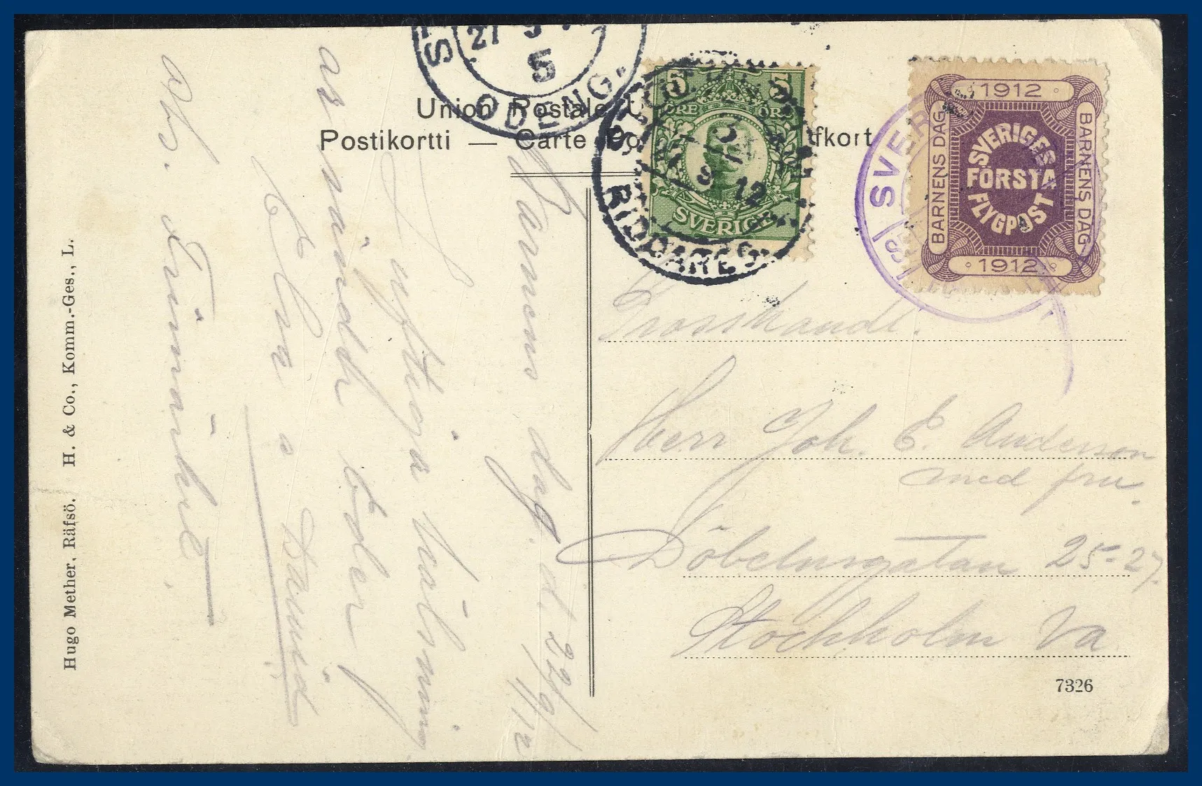 236. (A) 5 öre Inrikes brevkort med bundet flygpostmärke (HF1)