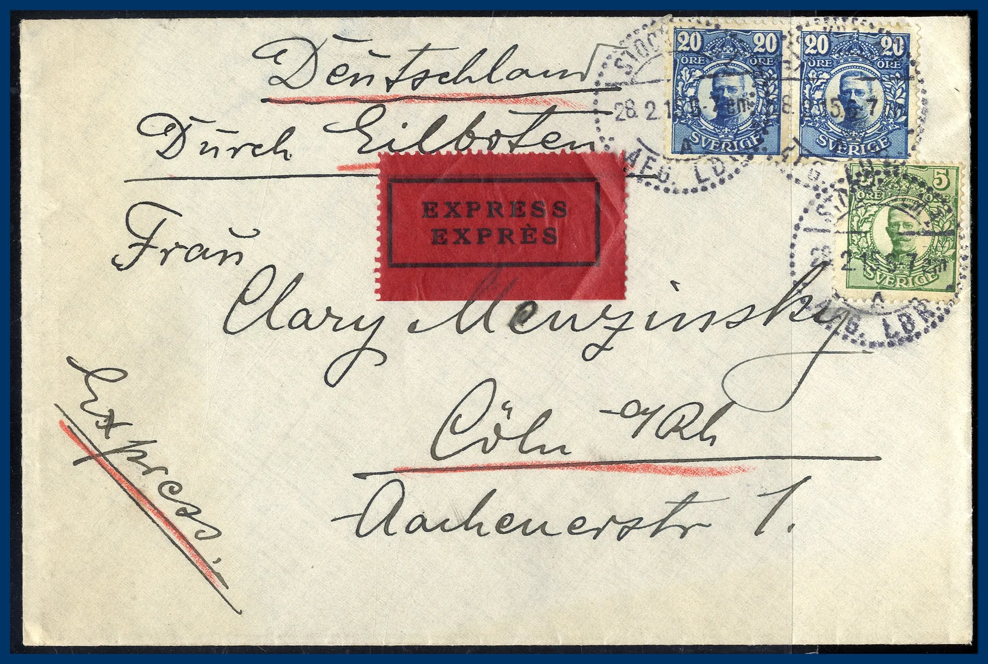 Tyskland. Avstämplat "STOCKHOLM 28.2.1915".