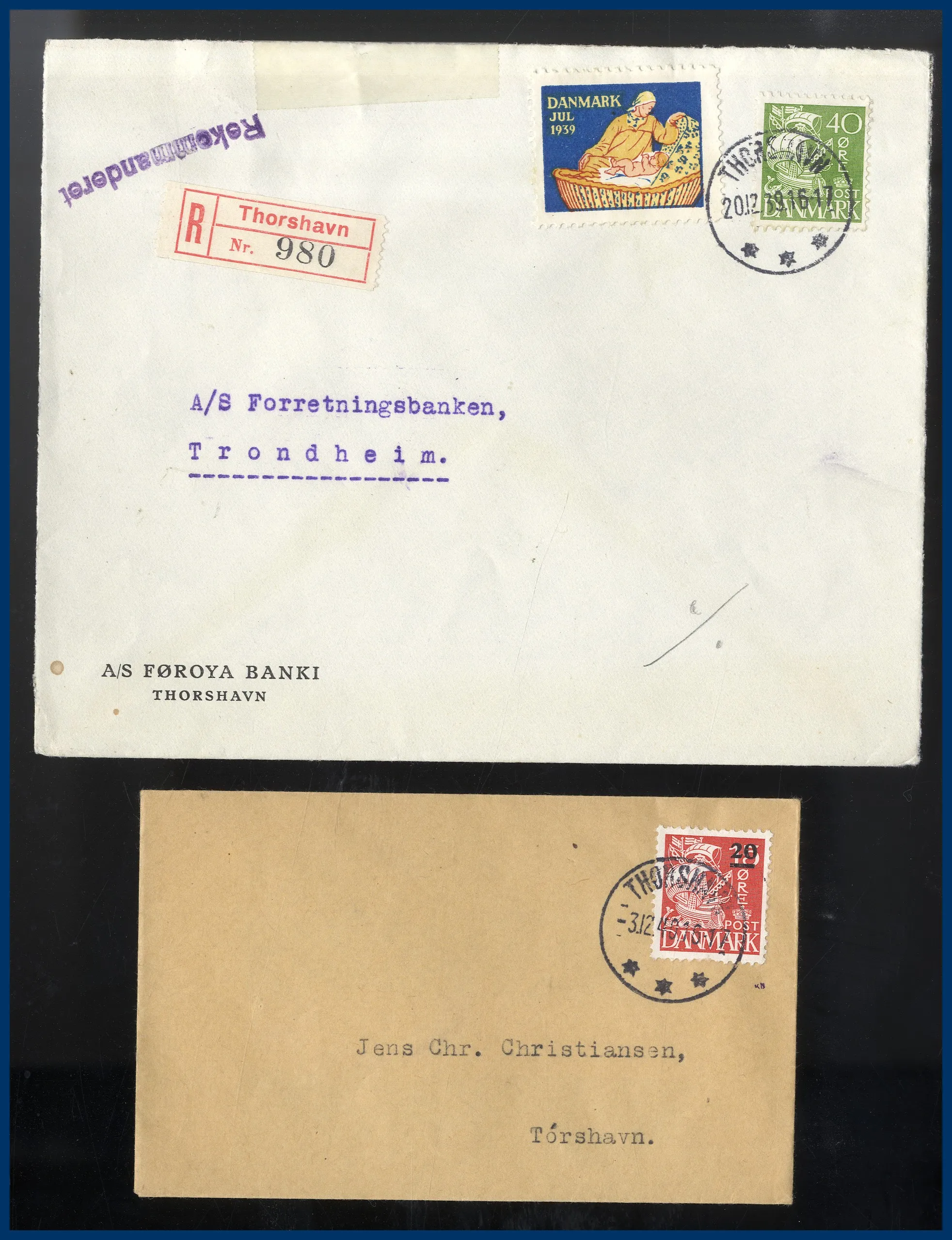 322. (A) Färöarna: 2 försändelser, det ena 40 öre (F236) REK till Norge