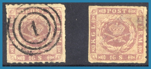 169. (A) F.10 16 skilling rödlila med nummerstämpel 1.