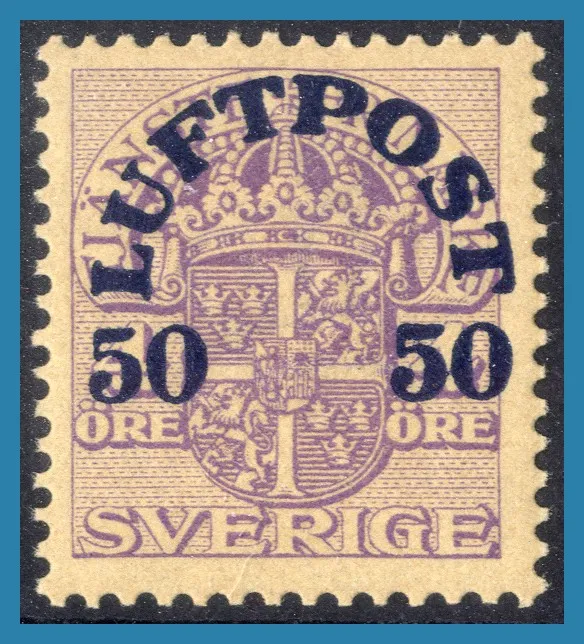 145. (A) F.138 vm krona ** Flygpost 50 på 4 öre lila.