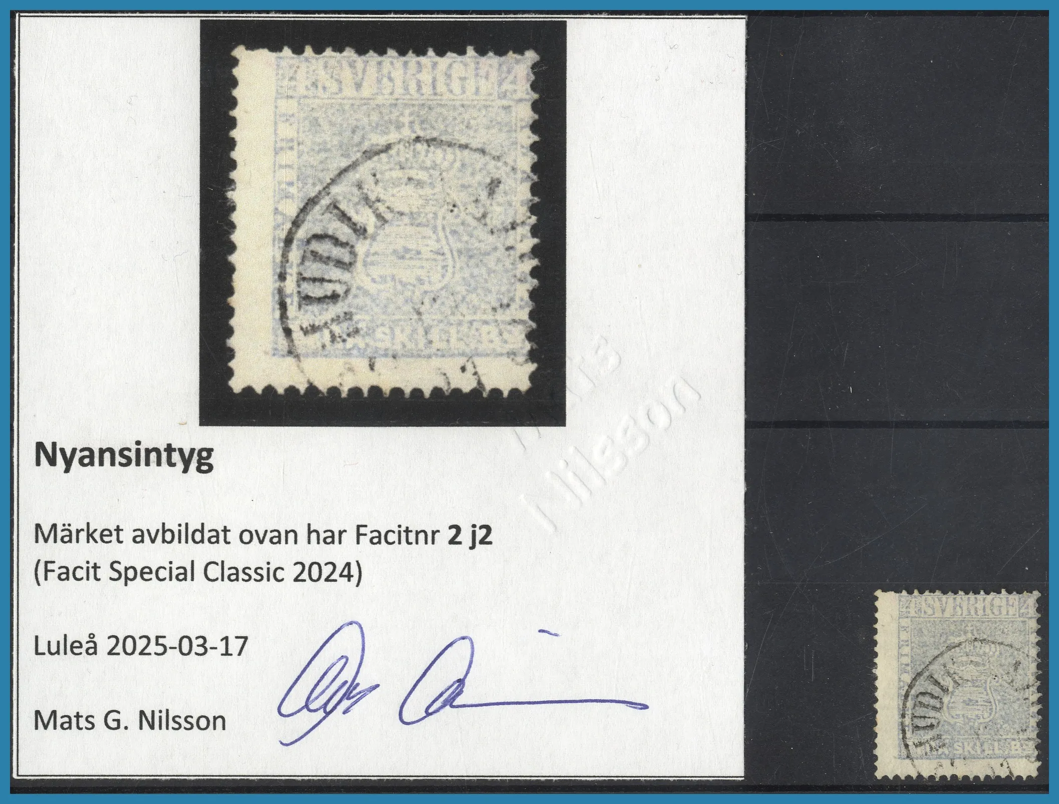 242. (A) F.2 j2 stämplat exemplar med nyansintyg Nilsson (2025)