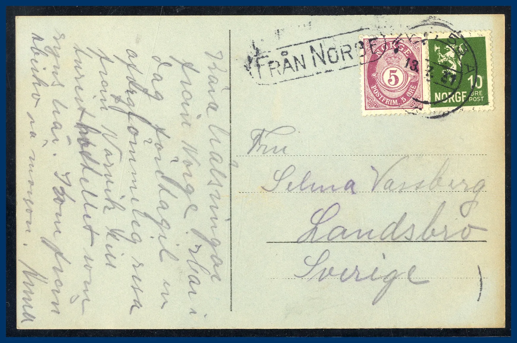 3. (A) "FRÅN NORGE" inom ram, stämpeln binder frankeringen