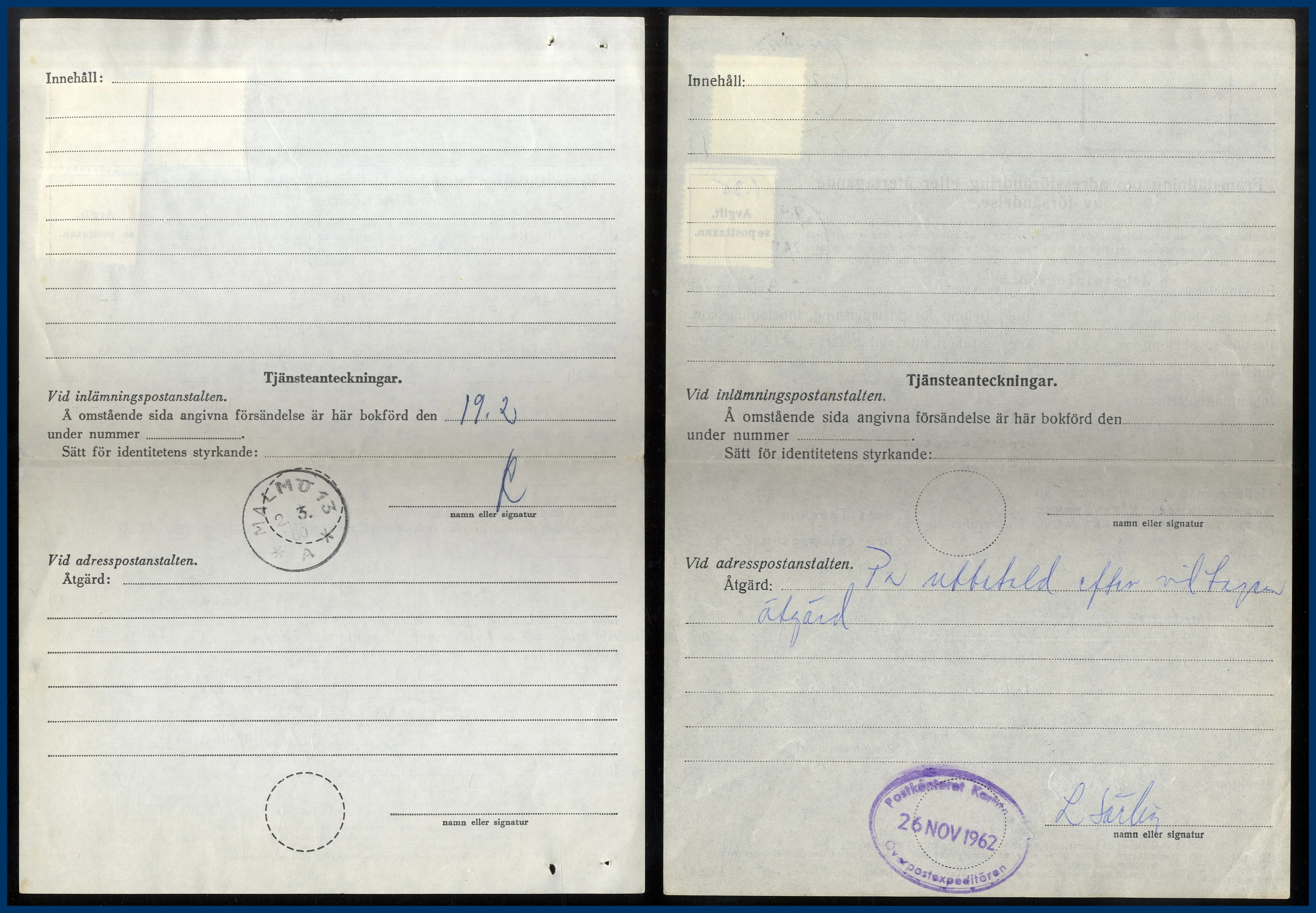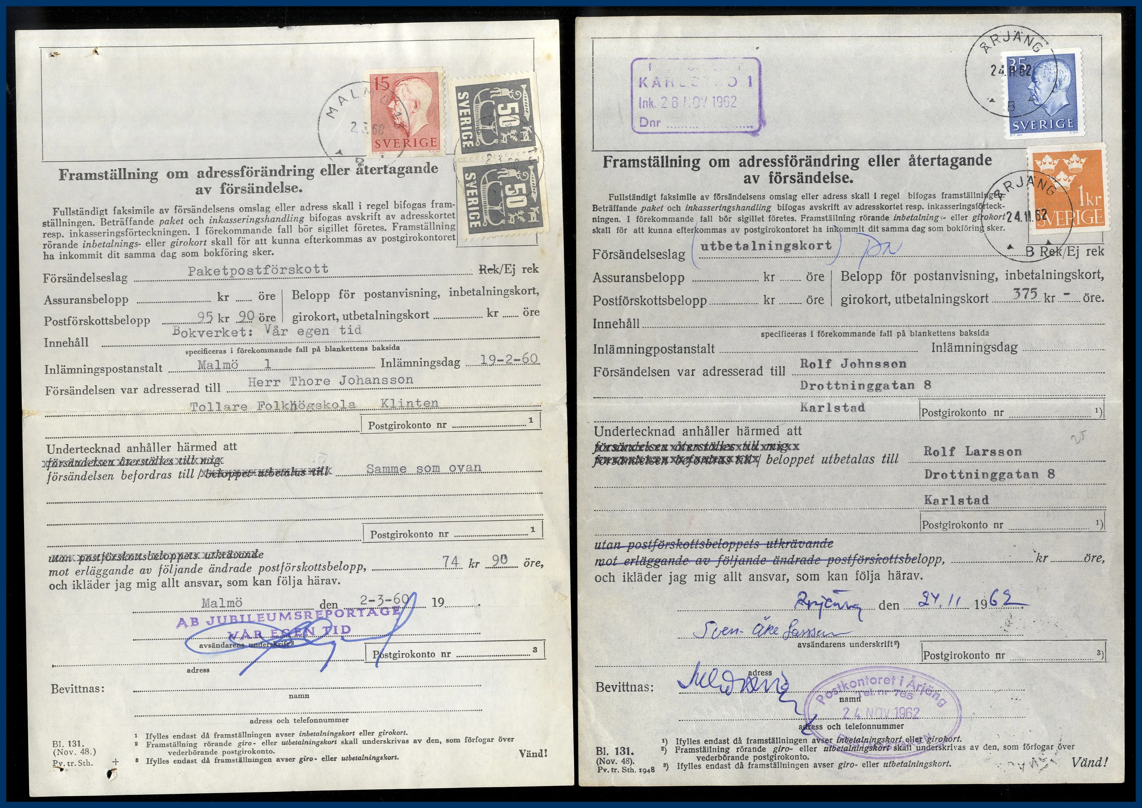 61. (A) Framställning om adressförändring eller återtagande