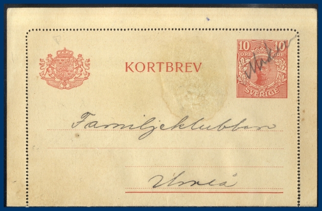 48. (A) kB14 10 öre röd med rivkant. Hektograferad adress