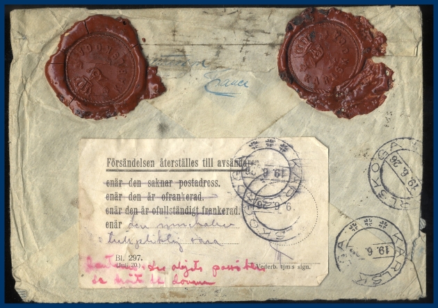 25. (A) Kuvert från Frankrike till Karlskrona 1926, öppnat