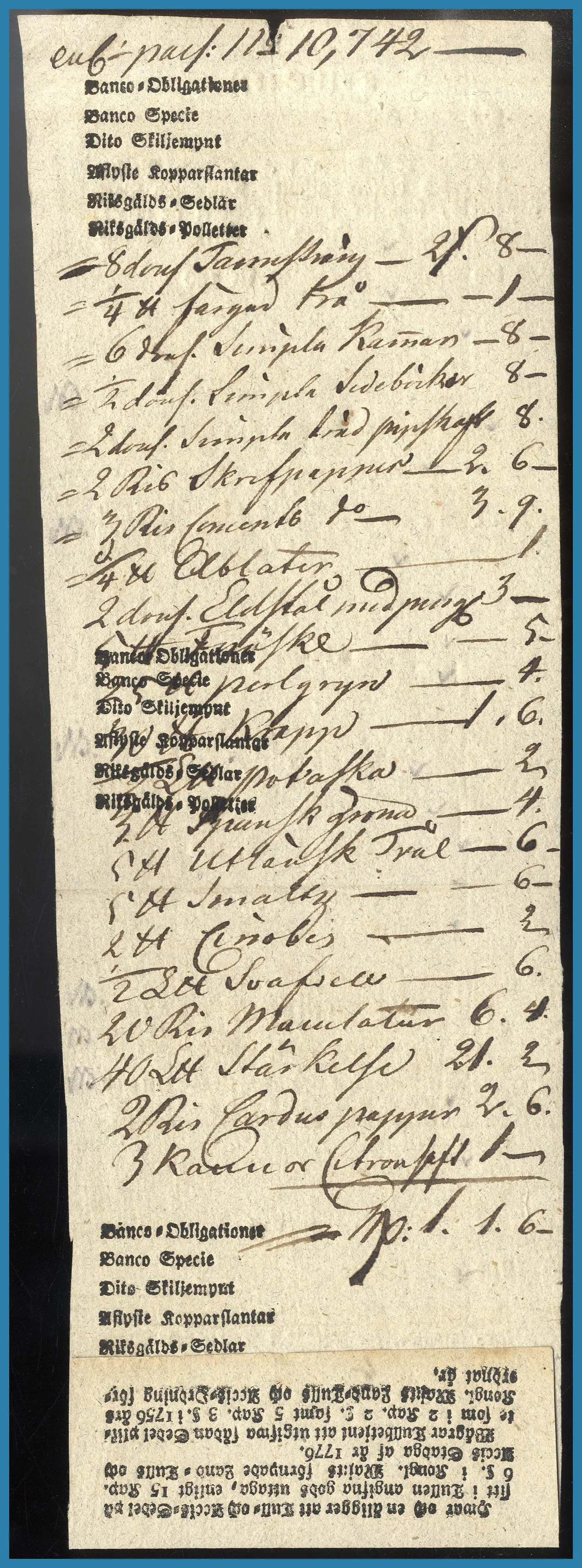 7. (A) Tullpant kvitto, Oanvänt 1700-talet.