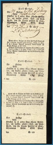(A) Kvitto på passagetull, Sjötull. Västerås sjötull 1809.