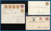 inrikes brevomslag 1877, 10 öre Fk 3B tilläggsfrankerat med 20 öre på rekommenderat inrikes brev "DJURA 9.7.1889" och 10 öre Fk tilläggsfrankerat med 5x 2 öre "GEFLE 27.10.1893" till Frankrike.