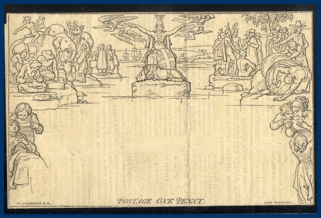 211. (A) Oanvänd Mulready helsak med reklamtryck på insidan