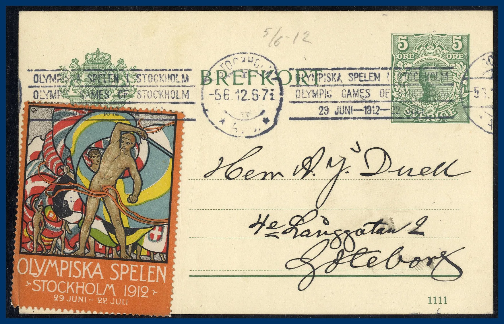 på 5 öre brefkort med bundet Olympiad reklammärke sänt till Göteborg.