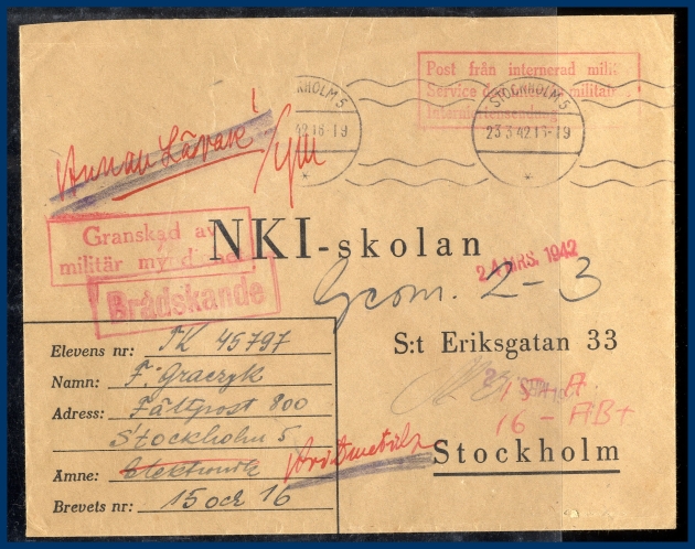 251. (A) "Post från Internerad militär..." inom ram på ofrankerat