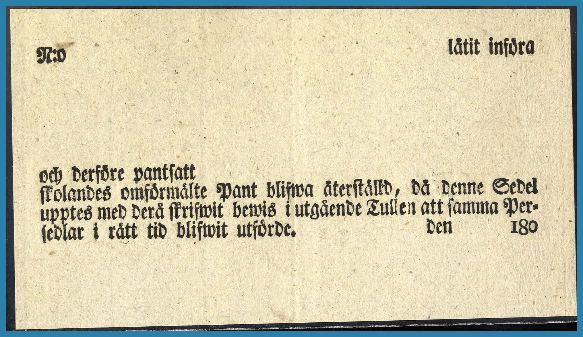 (A) Tullpant kvitto, Oanvänt 1700-talet.