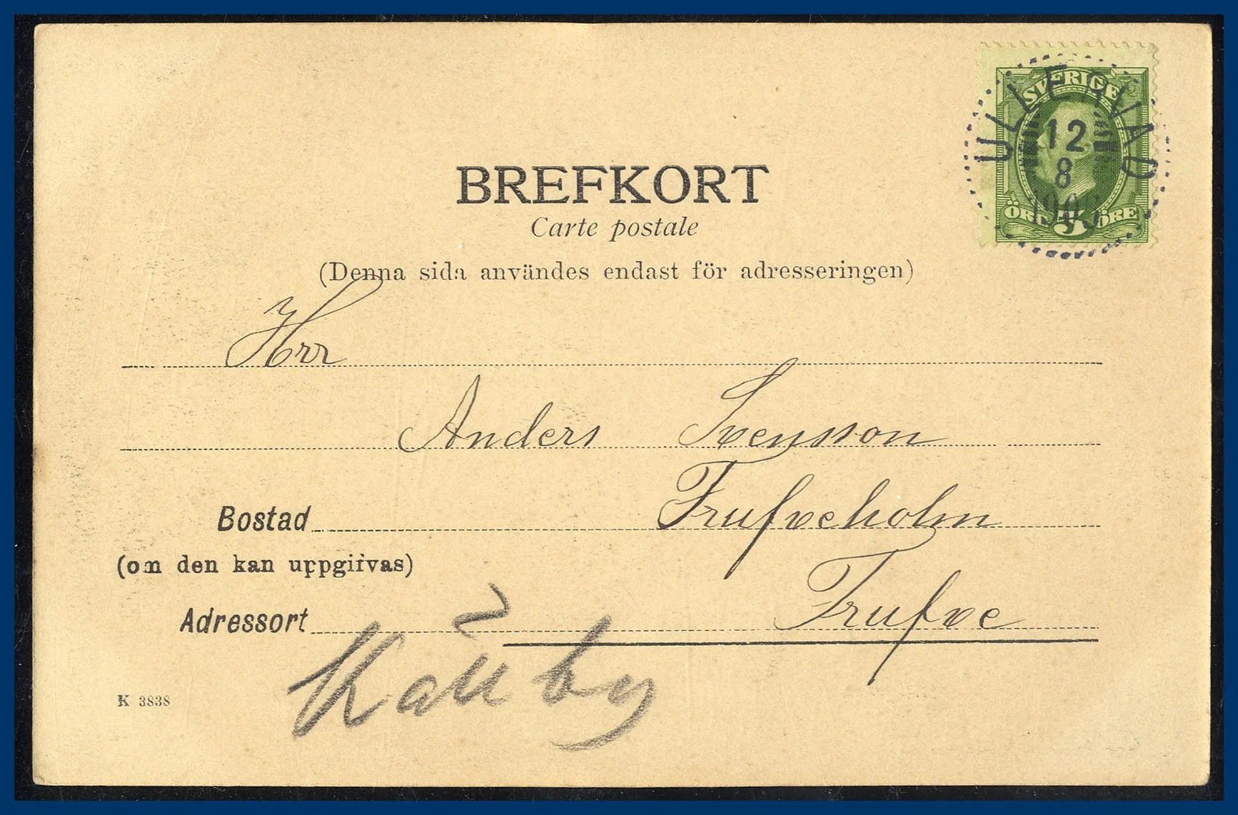 27. (A) ULLERVAD 12.8.1905 LYX stämpel på 5 öre Oscar II