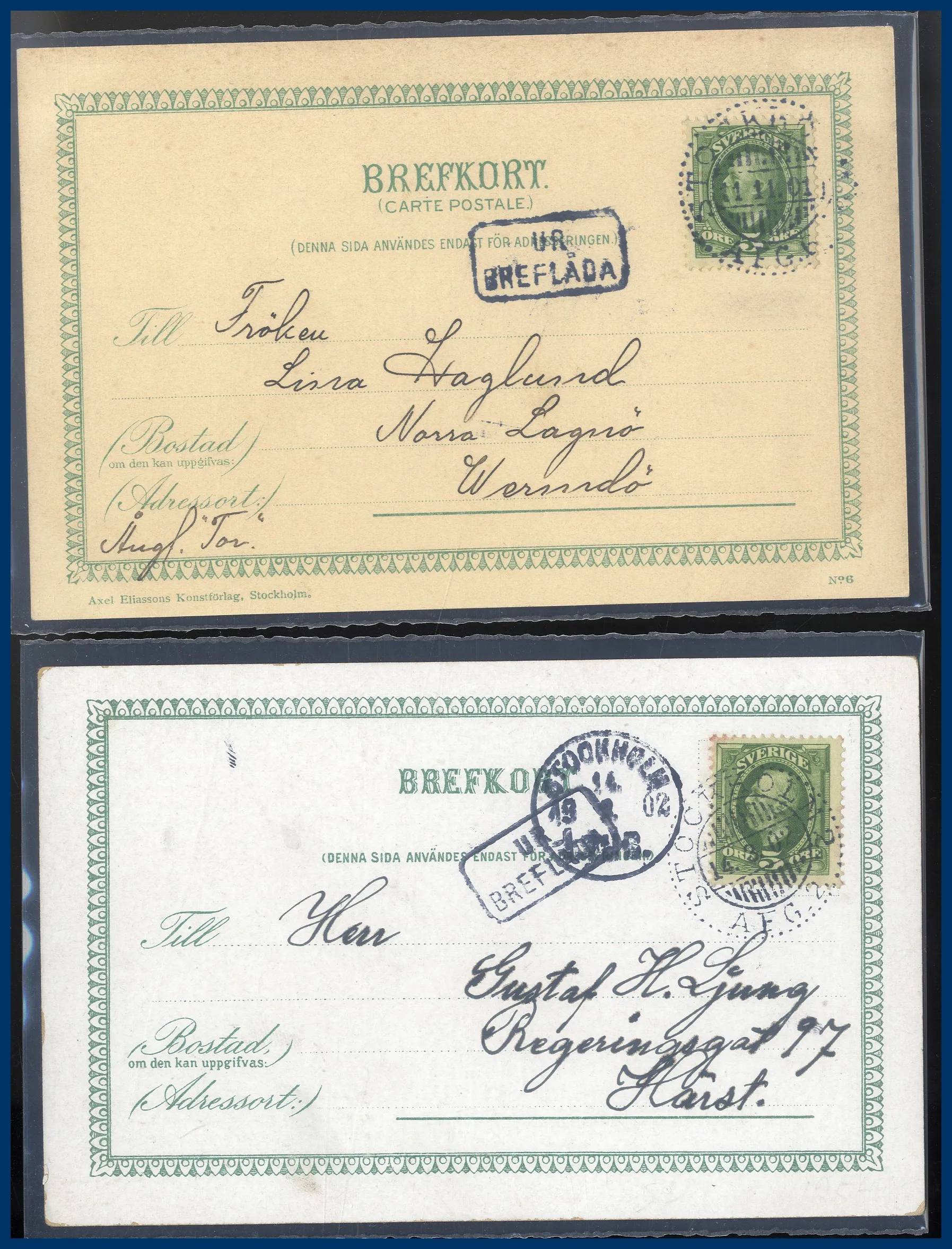 6. (A) "UR BREFLÅDA" inom ram på två olika inrikes vykort