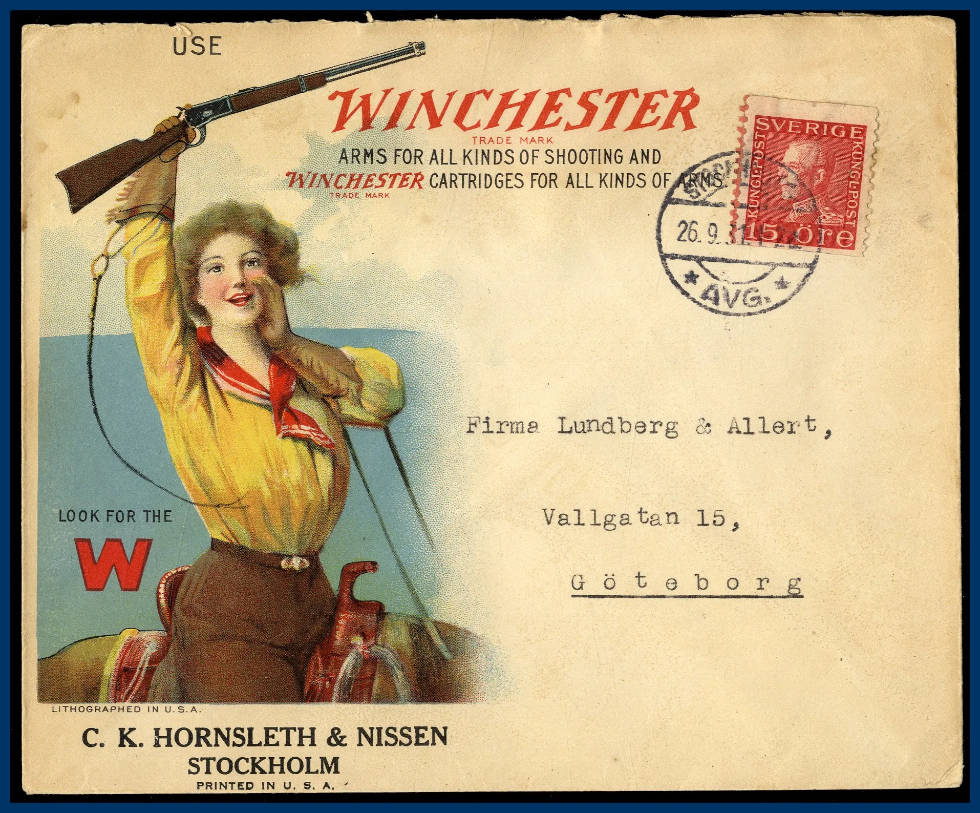 213. (A) Winchester 4-färgsreklam på vackert inrikes brevkuvert