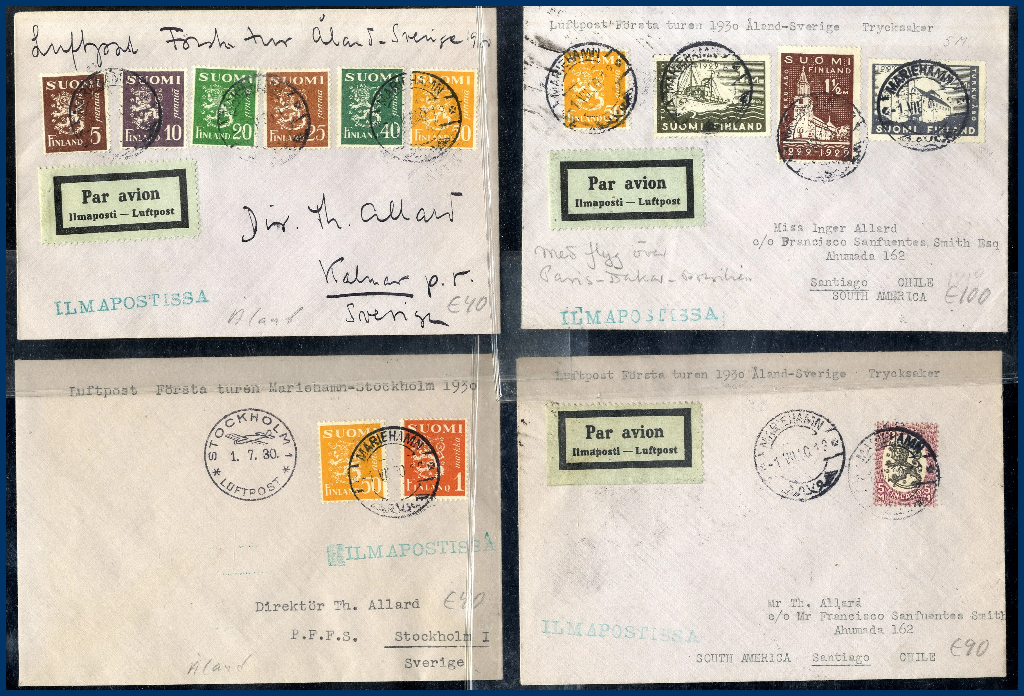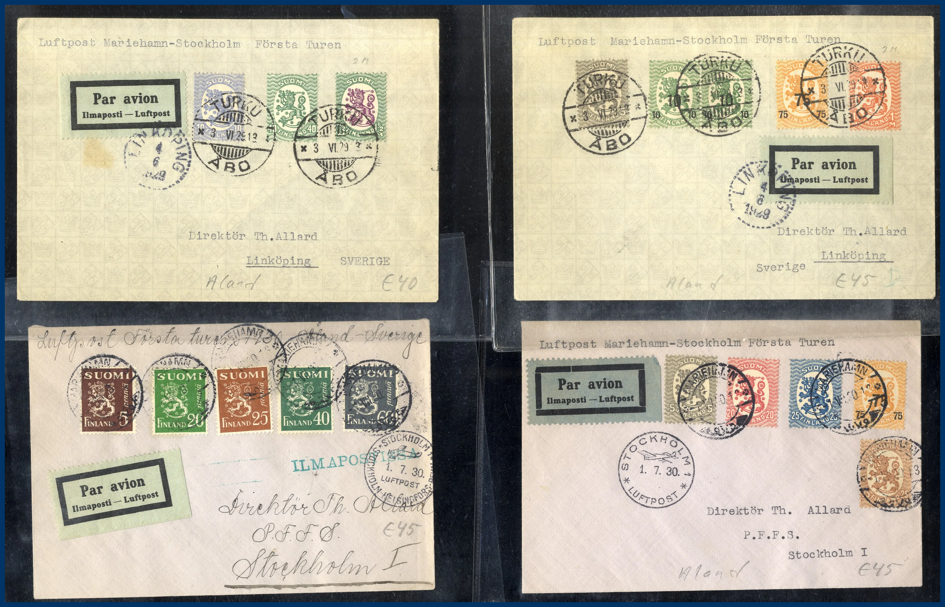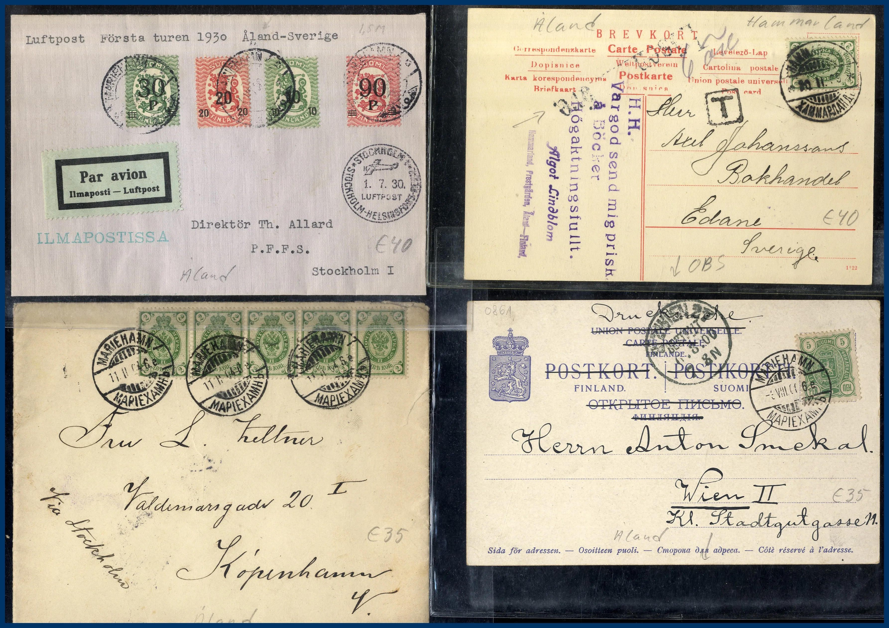 152. (B) Åland: 38 st försändelser förfilateli-1930 med finska