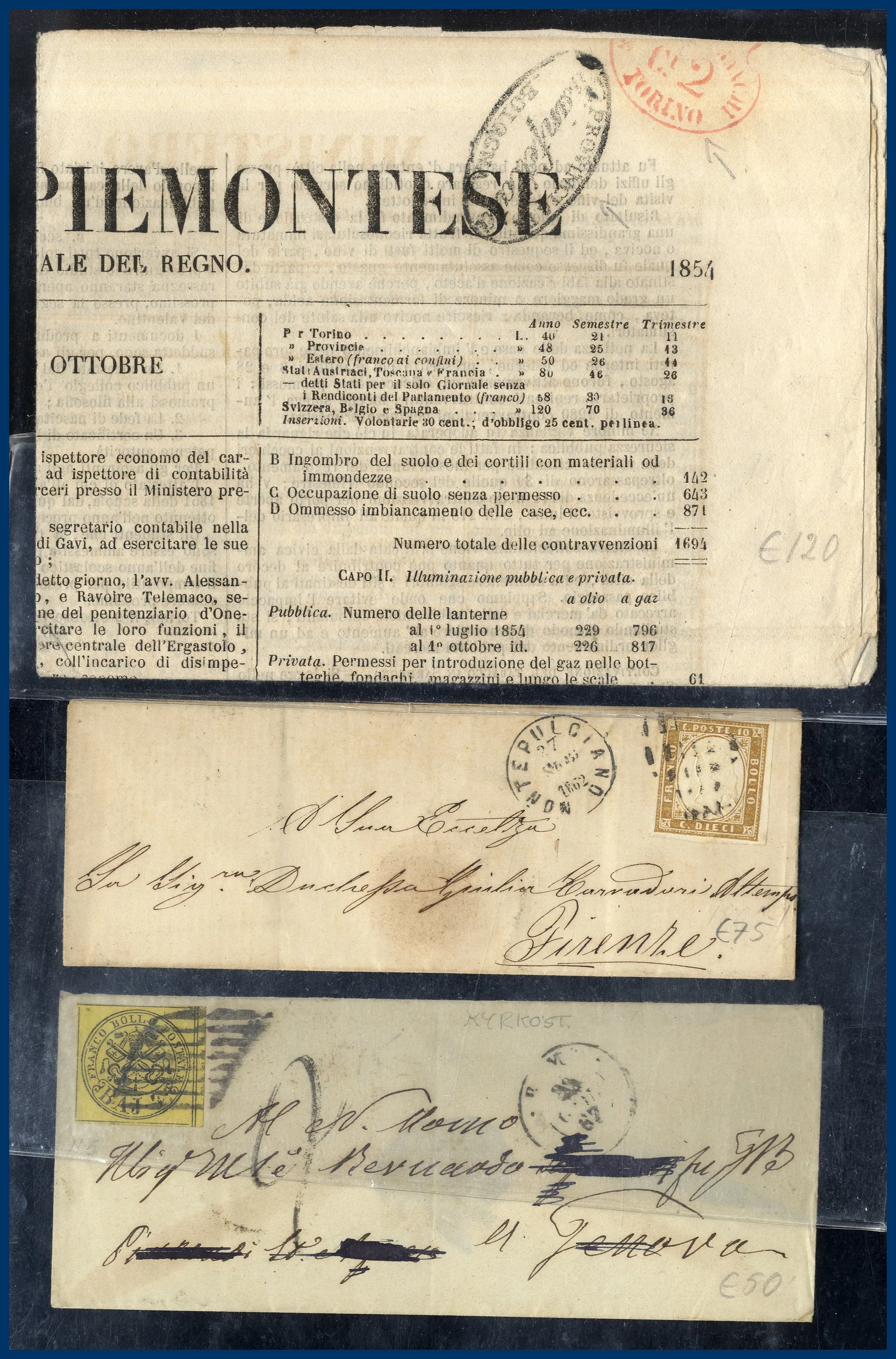 73. (B) Italienska Stater: 39 st försändelser 1850-1860 talet.