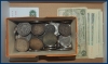 464. (B) Liten låda mest svenska mynt bla silver: 2 kr -1942 (5 st)