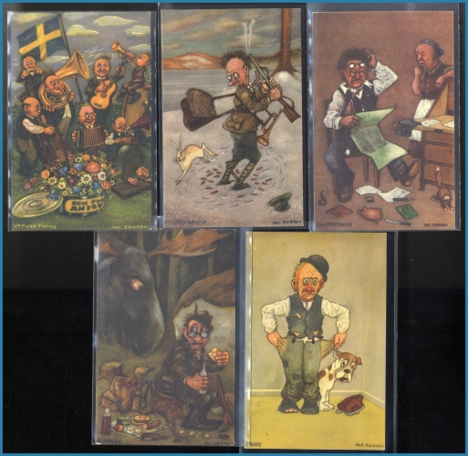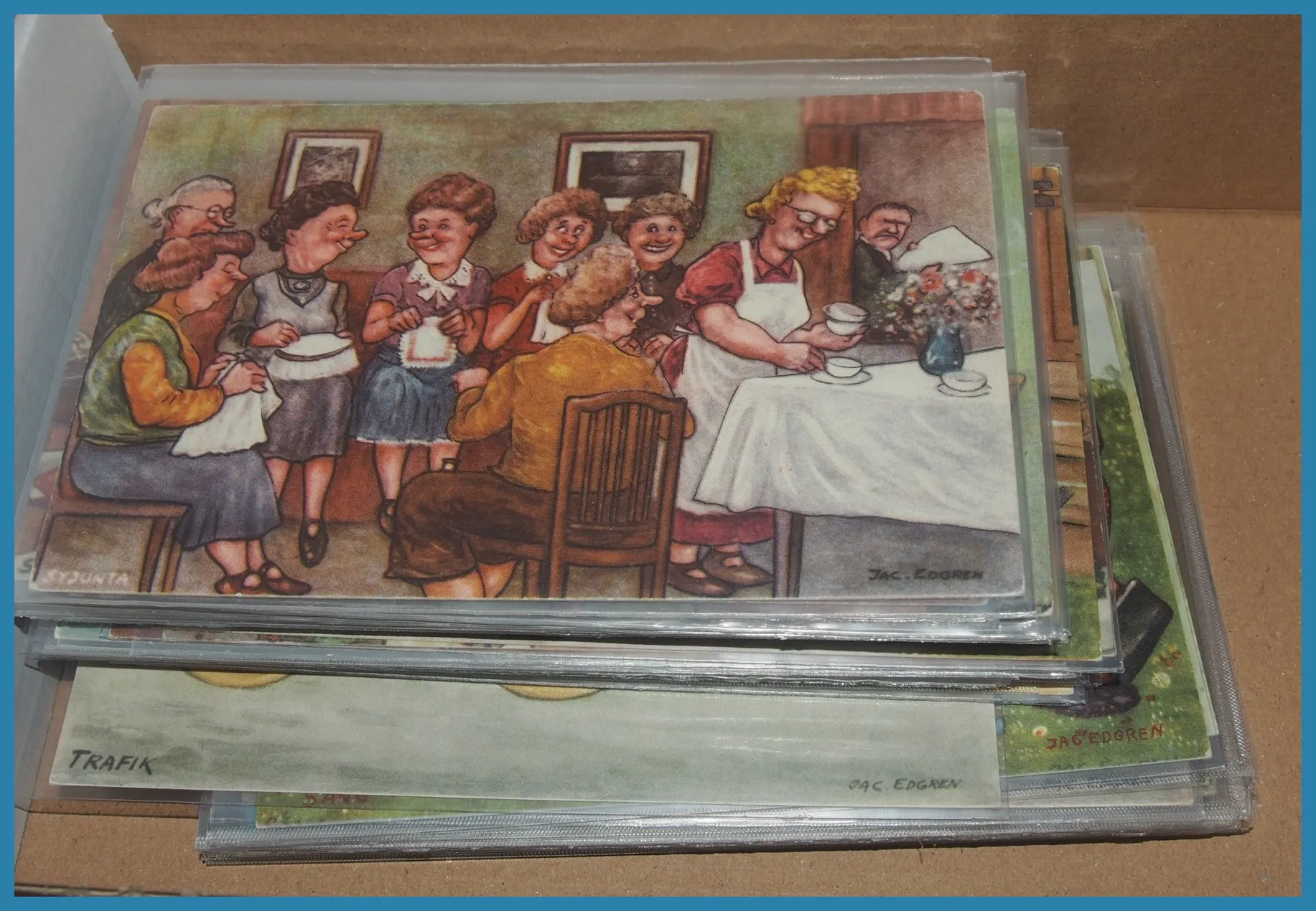 94. (B) Lot med 70 st vykort Jac Edgren, mest olika av