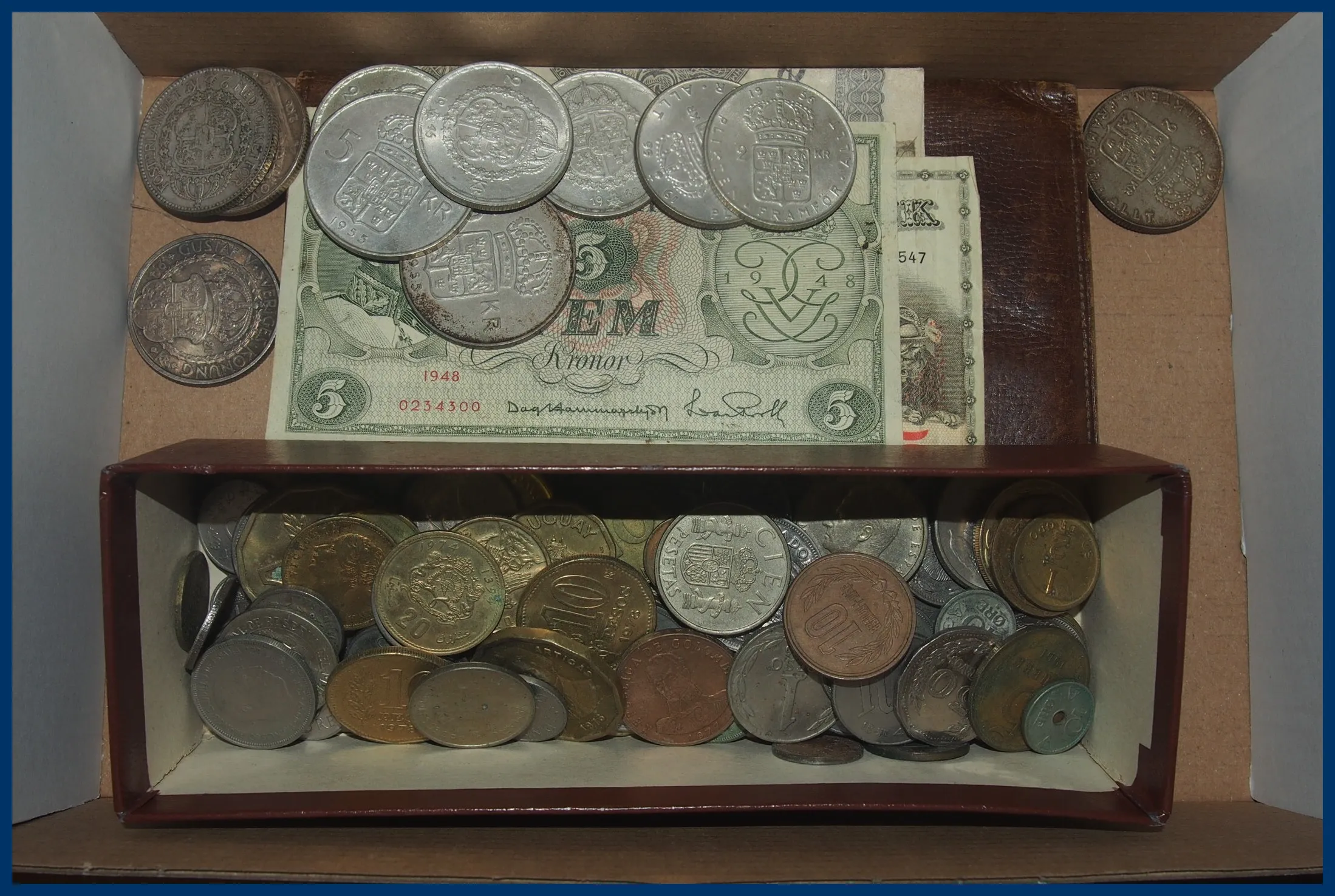 162. (B) Svenska silvermynt: 5 kr (2 st), 2 kr -1940 (3 st), 2 kr -