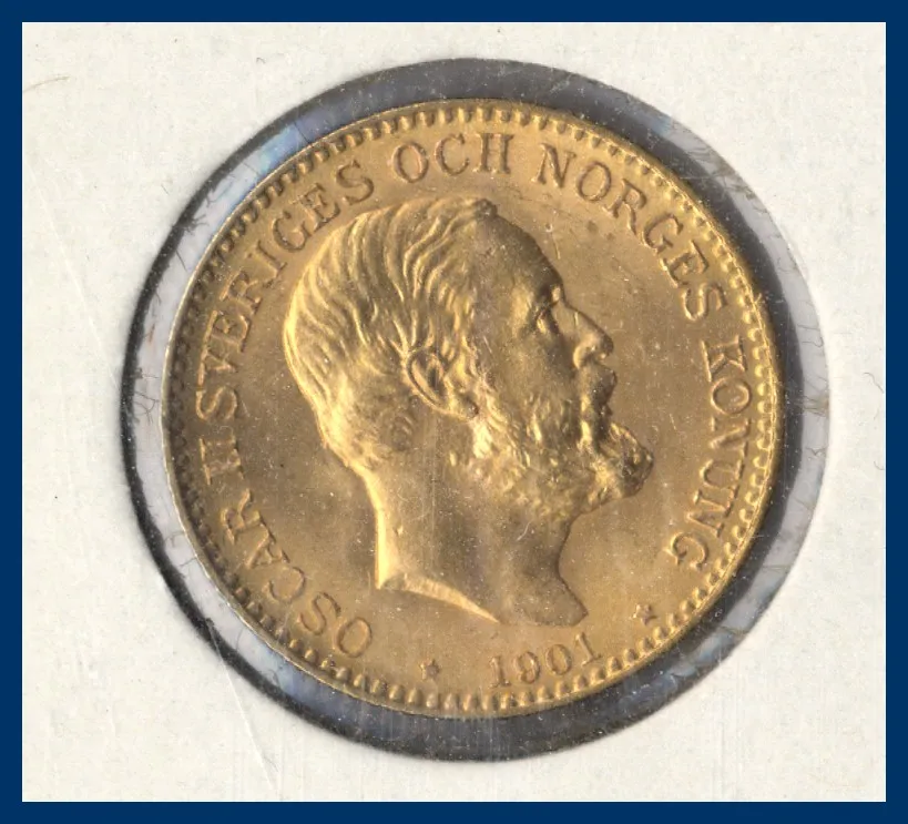 322. (C) 10 kr guldmynt 1901, 90% guld 4,48 gram.