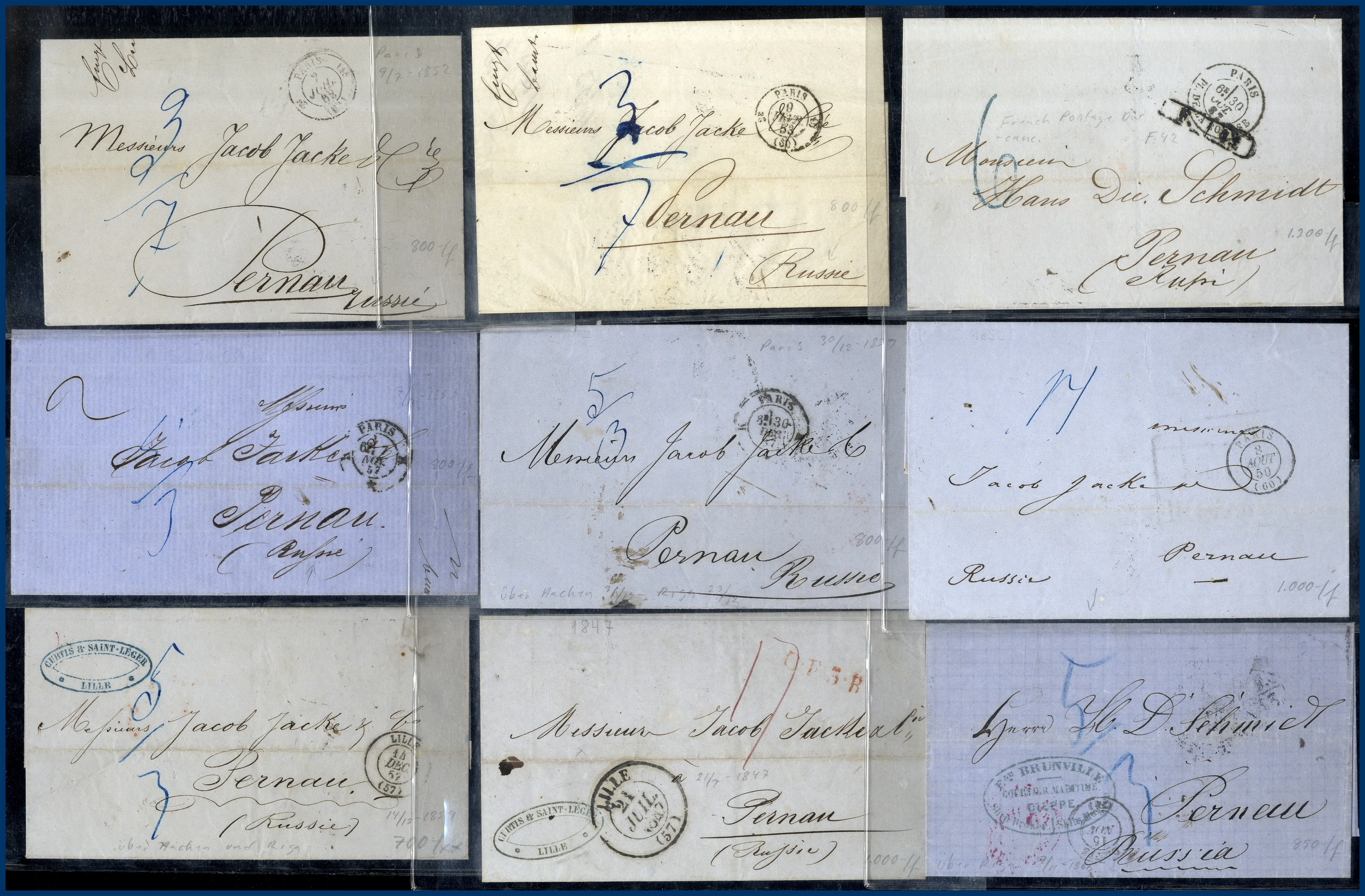 90. (C) 17 st förfilateliförsändelser från Frankrike till Pernau, Ryssland